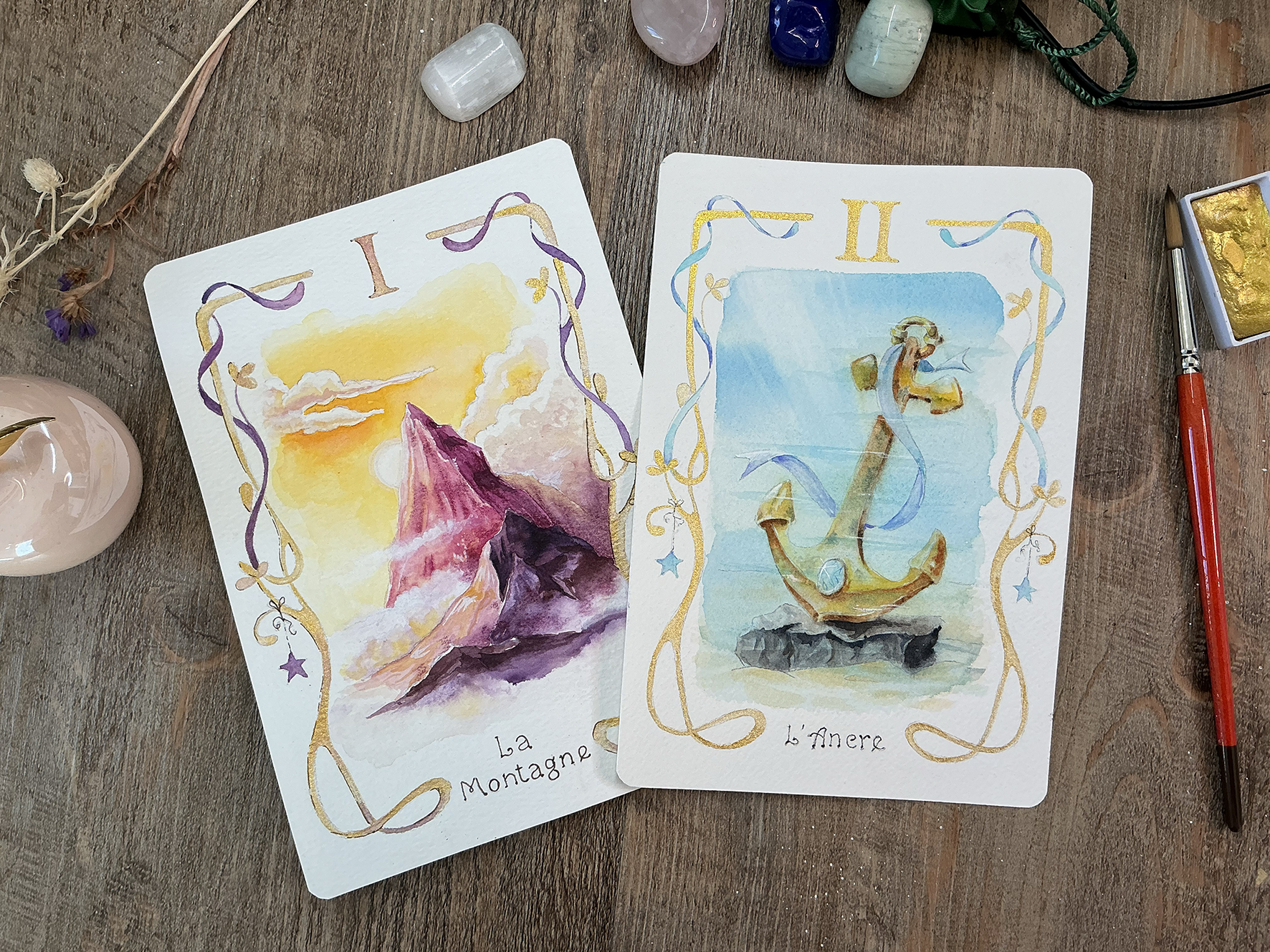 Ma formation “Oracle” est né de cette intention. Celle de proposer un chemin créatif sensible, où chaque carte peinte est une porte, chaque symbole un miroir, chaque création une rencontre avec soi-même.